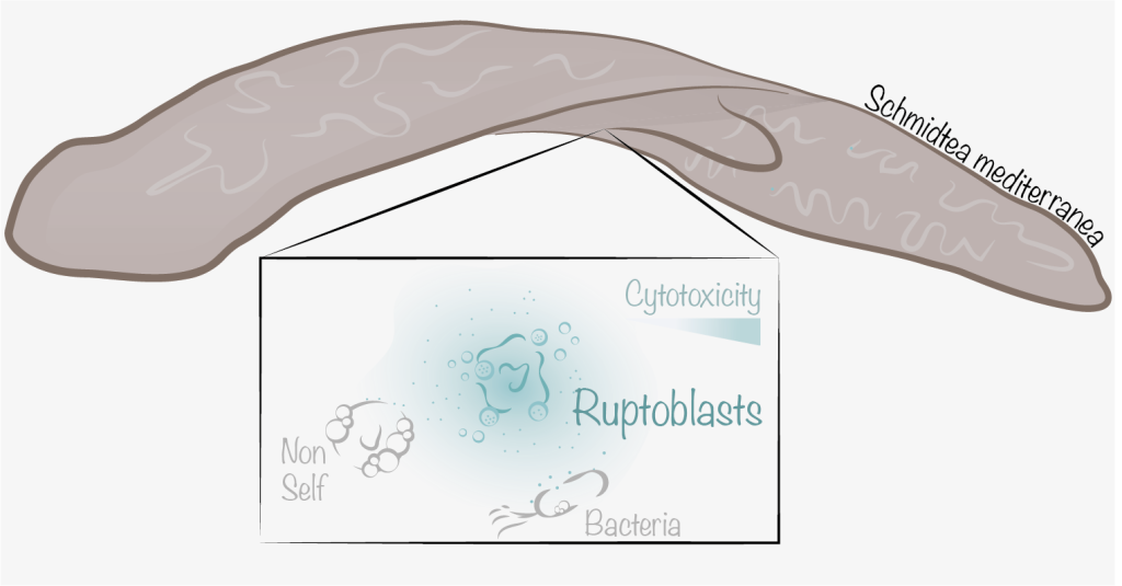 - Ruptoblasts are widely distributed in the planarian body and have broad cytotoxicity in vivo. Ruptoblasts were distributed body-wide, except in the head. After ACT-2-induced death, lost ruptoblasts were rapidly regenerated from neoblasts. Deletion of ruptoblasts, by fer3l-1 TF knockdown, suppressed chronic inflammation in chimeras, confirming the central role of ruptoblast in the inflammatory response and tissue damage induced by ACT-2.
