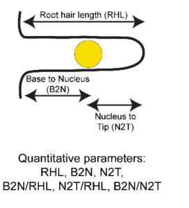 • Base-to-nucleus distance (B2N) – the distance from the root hair base to the nucleus.
